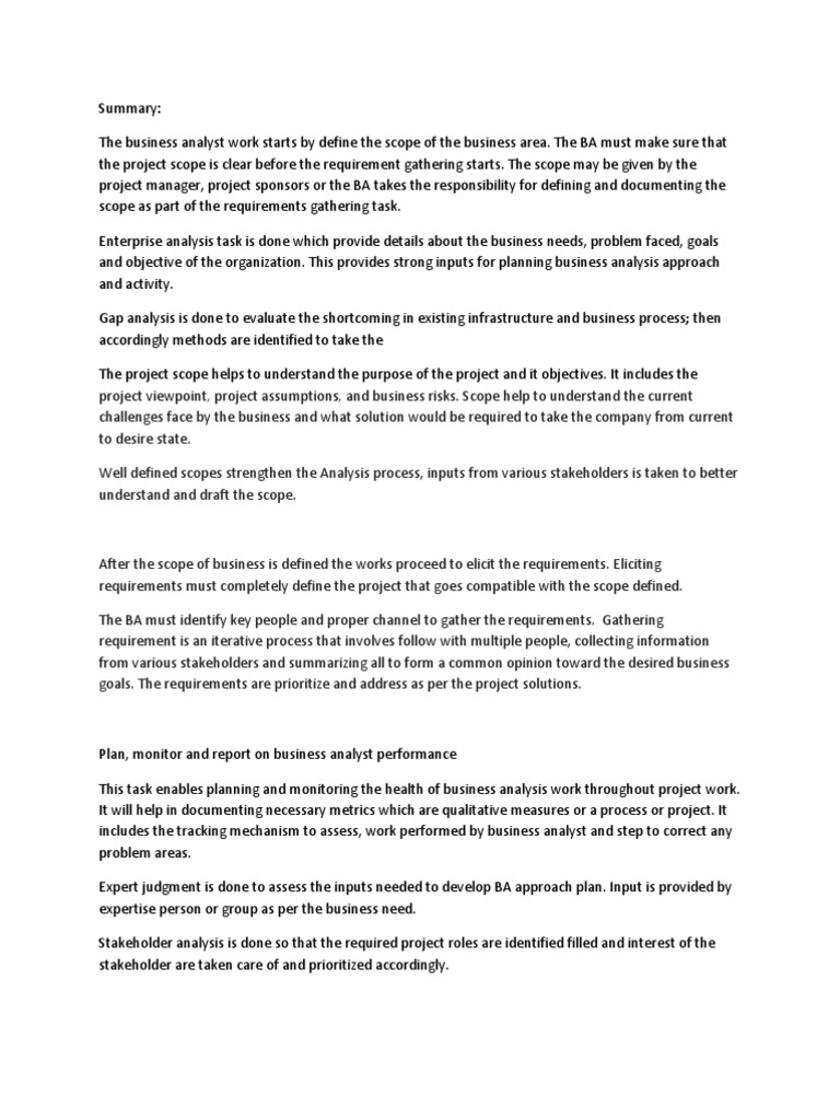 Ba Summary Business Analysis Verification And Validation